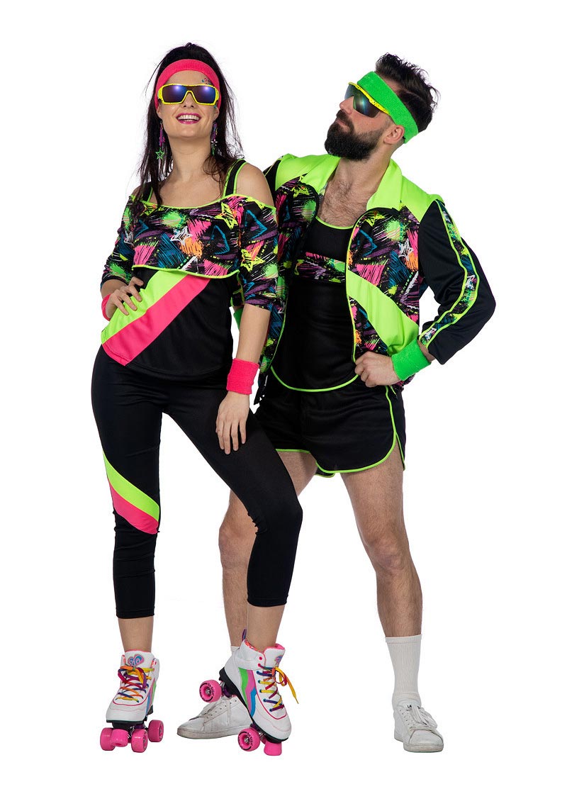 Een toffe Retro Aerobic Fitness Outfit voor dames in de typische 80's neon kleuren.