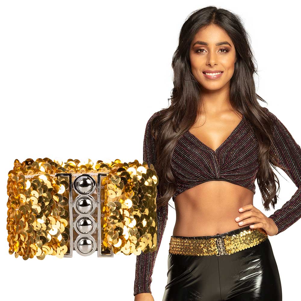 Deze riem Pailletten goud is een mooi accessoire om je glamour look of festival look compleet te maken.