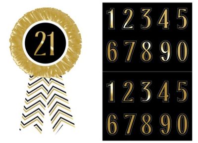 De rozet is goud, met wit en zwart en je kunt door middel van stickers de leeftijd zelf op de rozet plakken..