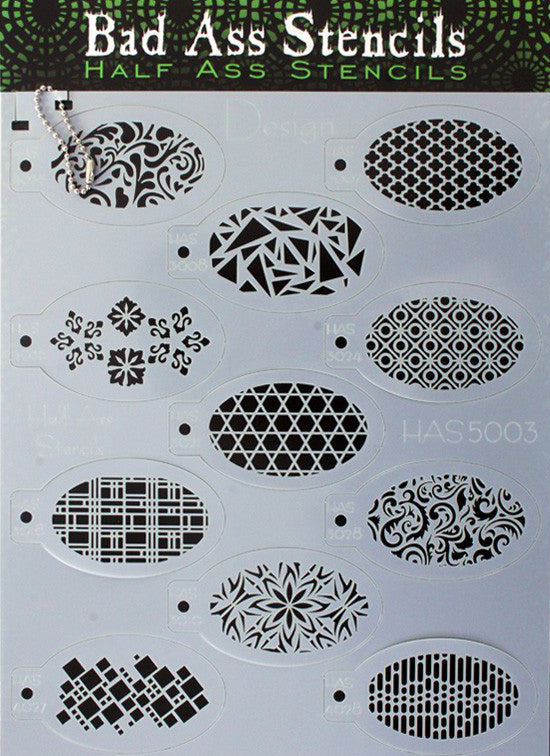 Deze set schminksjabloon bevat 11 mini schminksjablonen met populaire designs.