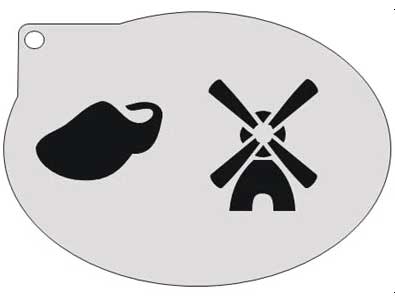 Met dit schminksjabloon schmink je snel en eenvoudig een afbeelding van een molen en klomp.