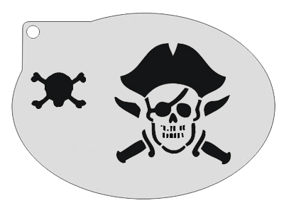 Met dit schminksjabloon schmink je snel en eenvoudig een mooie afbeelding van een piraat.