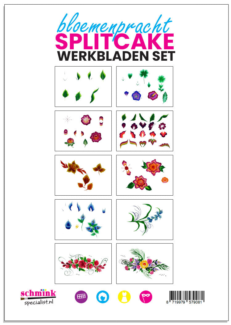 Deze handige Splitcake werkbladen set – Bloemenpracht bestaat uit 10 prachtige werkbladen vol bloemmotieven waarmee je alle belangrijke penseeltechnieken kunt oefenen. Ideaal voor iedereen die prachtige bloemdesigns wil leren maken of zijn vaardigheden verder wil verfijnen.