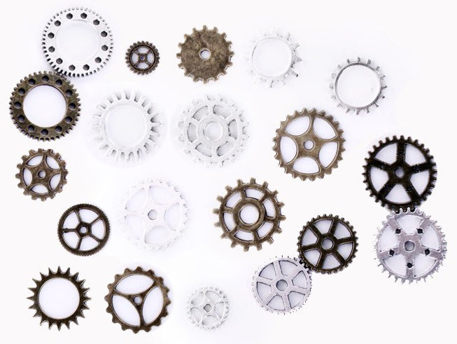 Deze set van 20 kleine steampunk tandwielen is de perfecte decoratie om uw hoed, kostuum of pruik mee te versieren in het Steampunk thema.