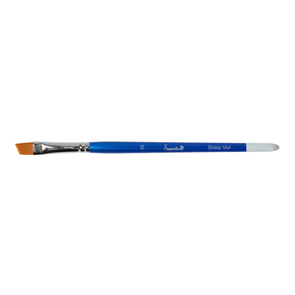 De Superstar Kunsthaar Schuin Penseel is een met zorg volgens ambacht in Europa gemaakte penseel van hoge kwaliteit. De Schuine kunsthaar penselen zijn hetzelfde als de platte penselen maar dan zijn de haren schuin afgesneden zodat je een korte en een lange kant hebt.
