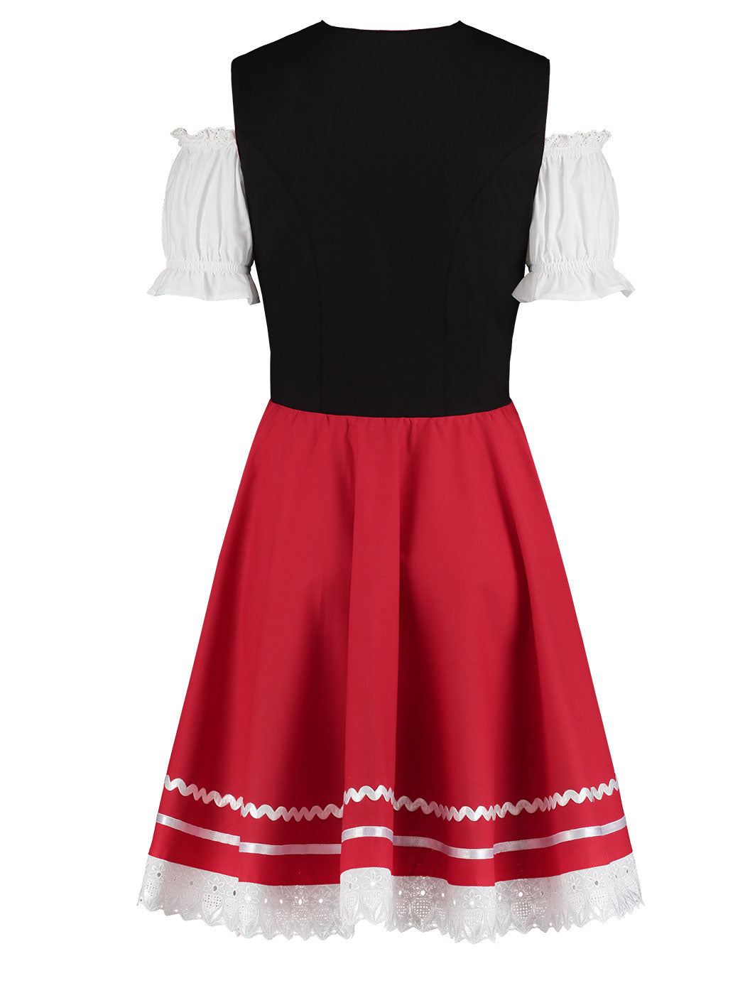 • Kleur: Zwart lijfje met rode accenten en een rood schort